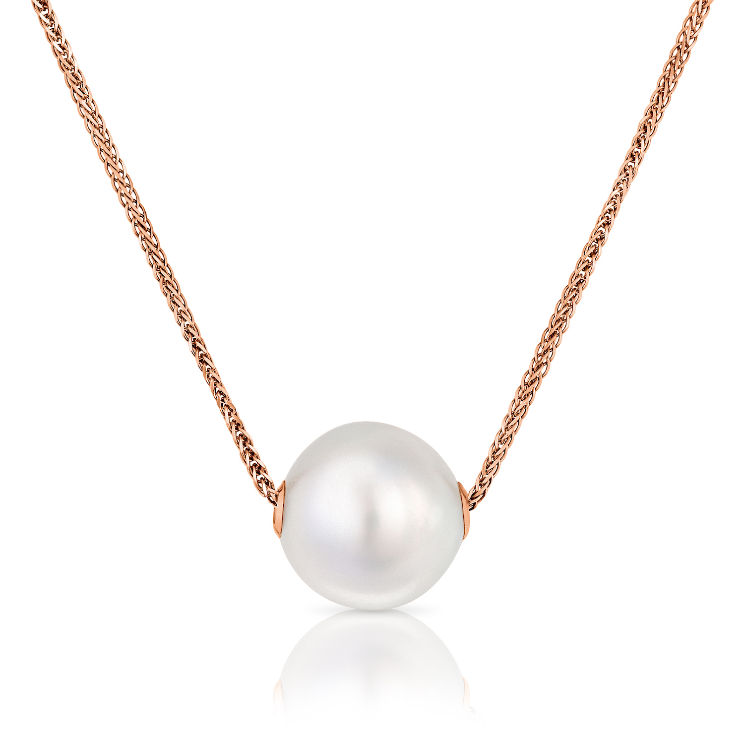 שרשרת זהב באורך 42 ס"מ עם פנינה שגדלה במים מתוקים.